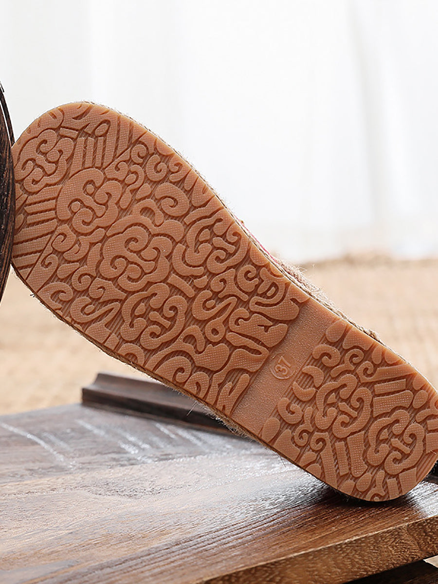Women Summer Ethnic Ribbon Flower Cloth Flat Shoes