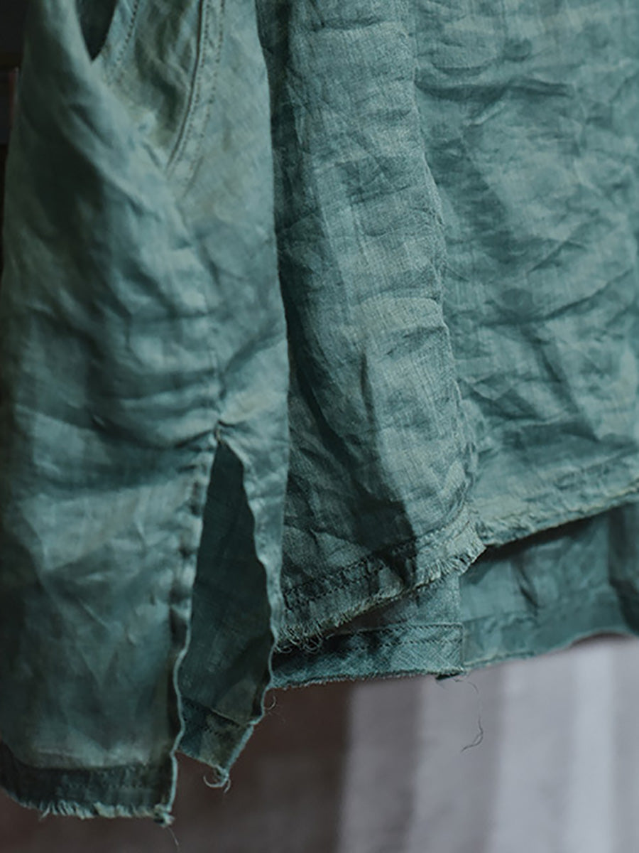 Women Summer Ethnic Solid Slant Spliced Ramie Vest