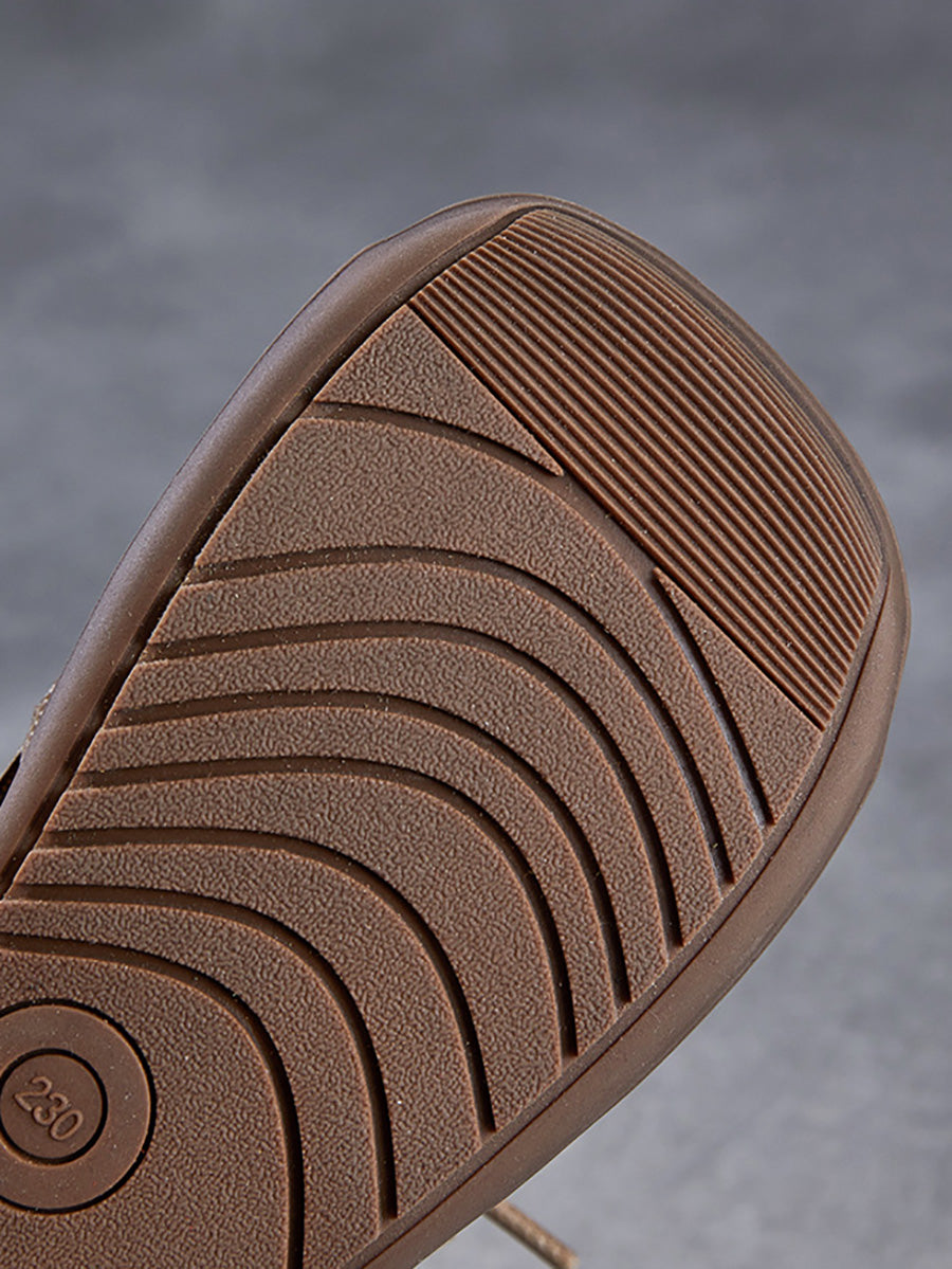 Women Summer Genuine Leather Open Toe Flat Sandals