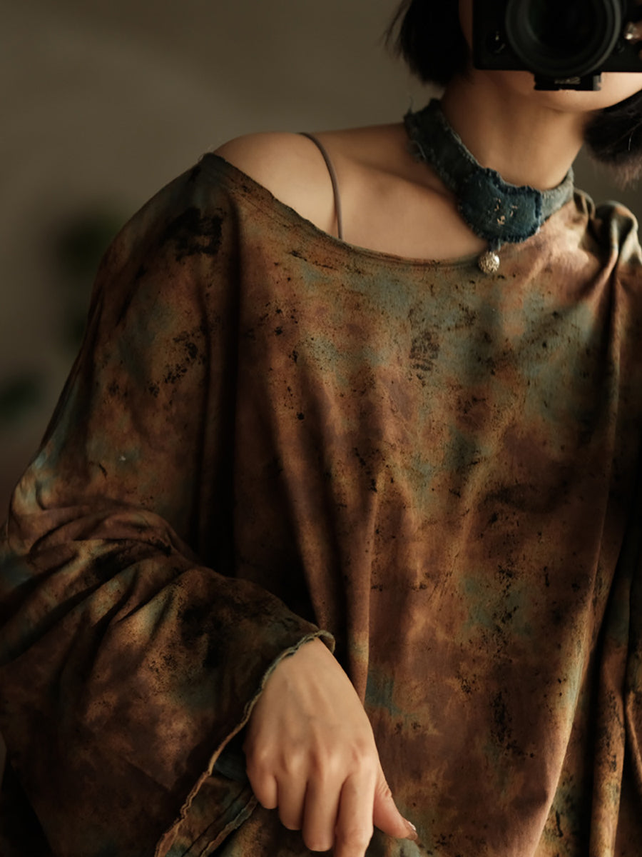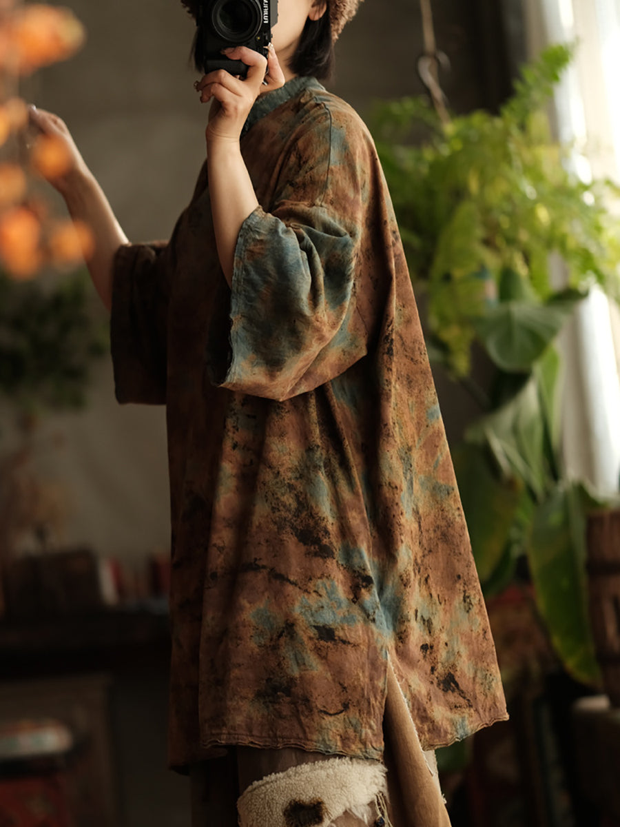 Women Summer Retro Flower O-Neck Cotton Shirt