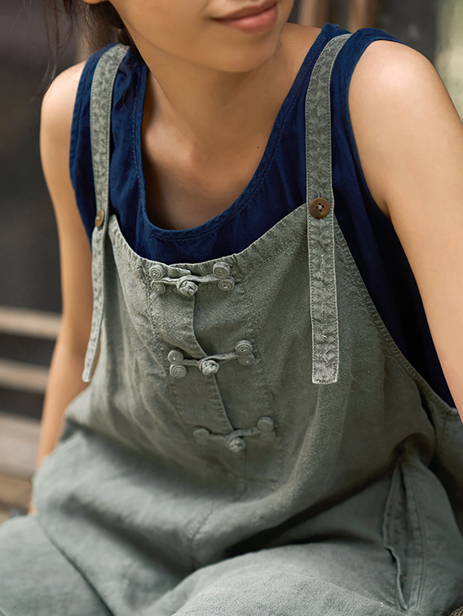 Plus Size Women Summer Retro Pure Color Jumpsuits