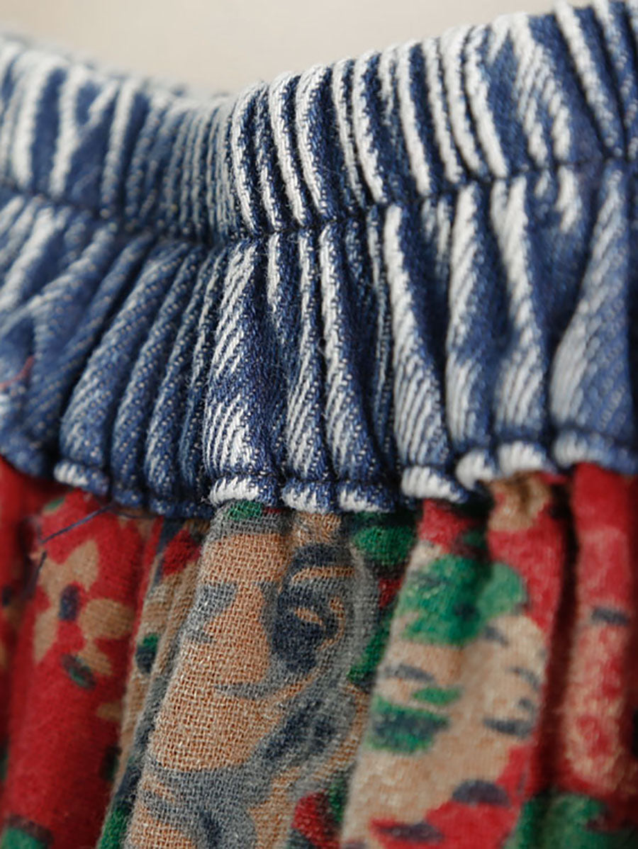 Plus Size Women Summer Vintage Floral Patch Spliced Harem Pants