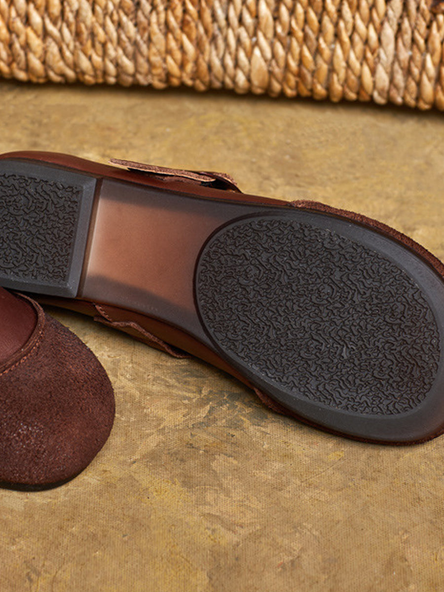 Women Summer Vintage Leather Spliced Low Heel Shoes