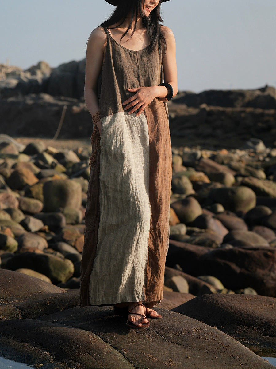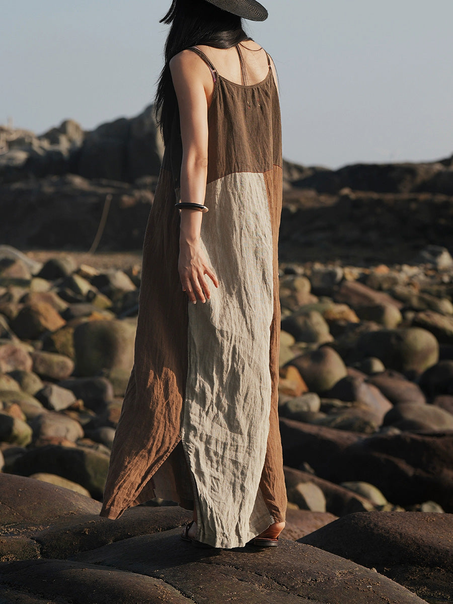 Plus Size Women Summer Vintage Patchwork 100%Linen Vest Dress