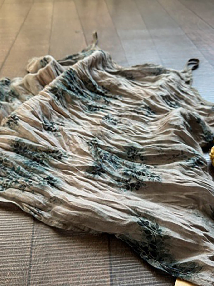 Made from ramie fabric with a floral print. this vintage style vest features an O-neck design and is perfect for the spring and summer seasons.