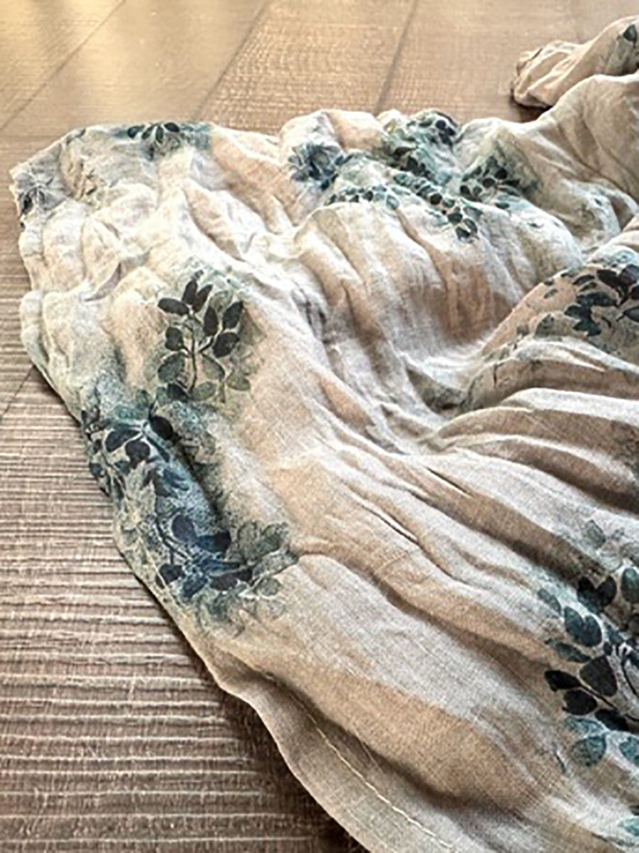 Plus Size Women Summer Vintage Print 100%Ramie Vest