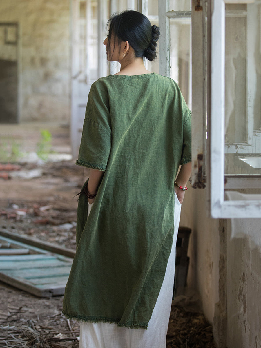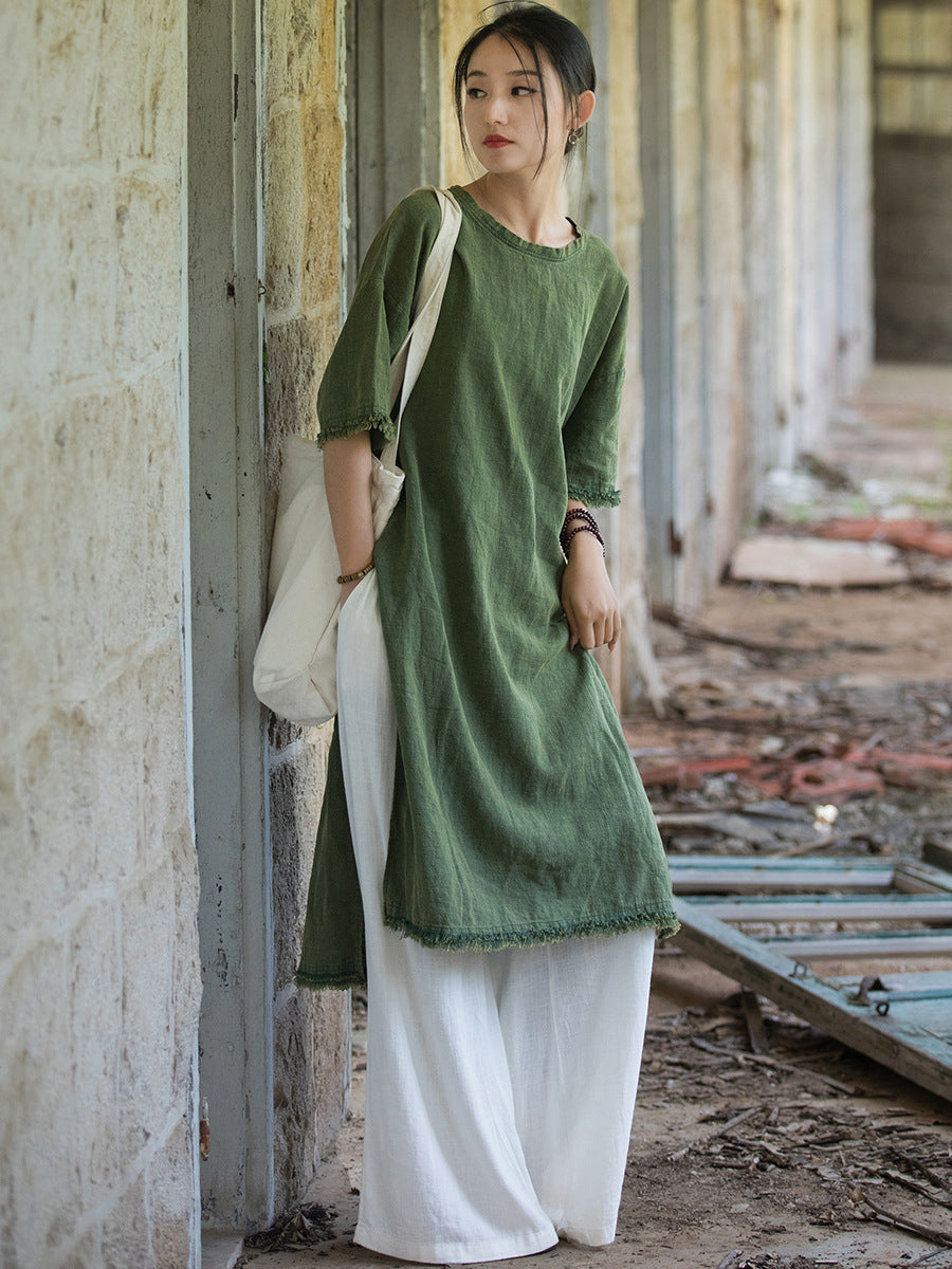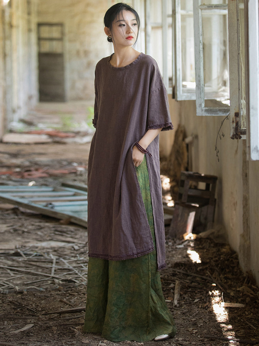 Plus Size Women Summer Vintage Tassel Split Hem Dress