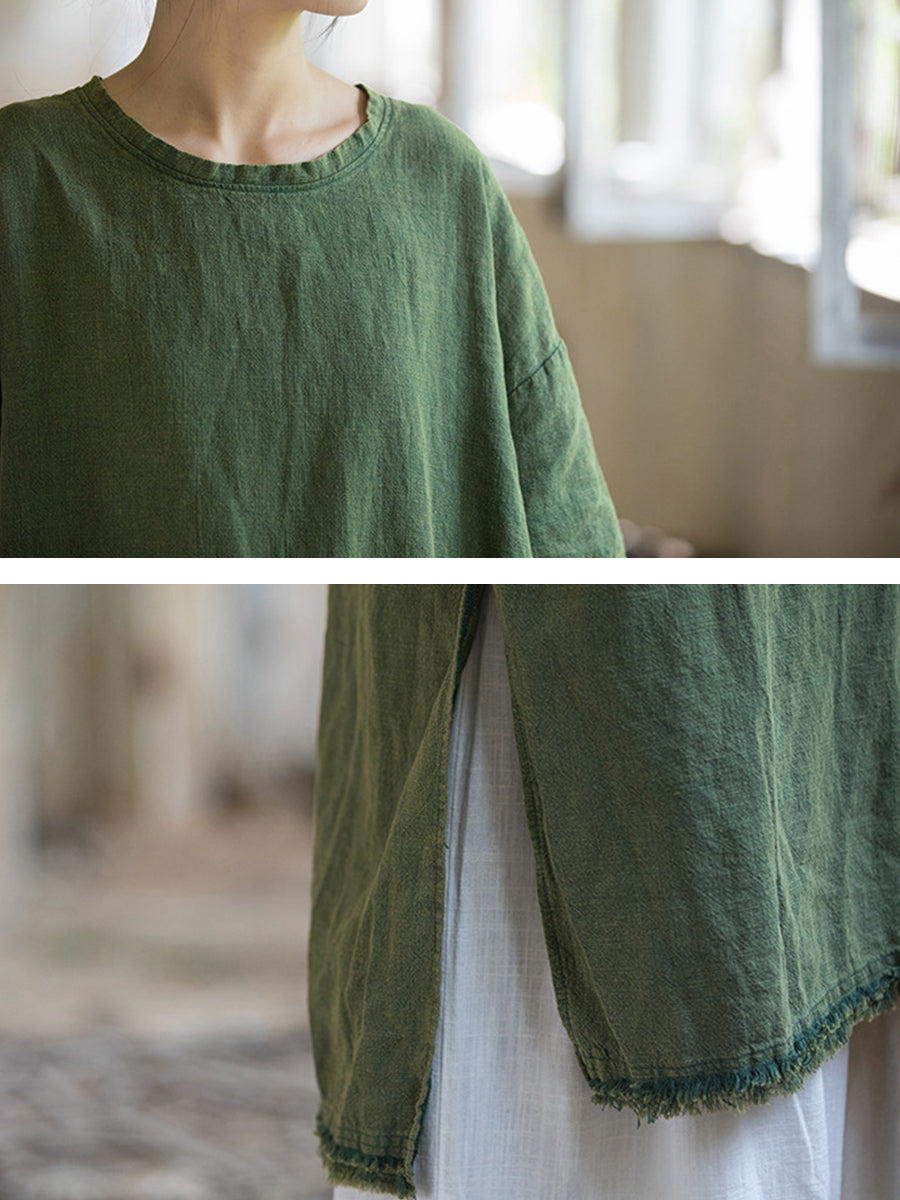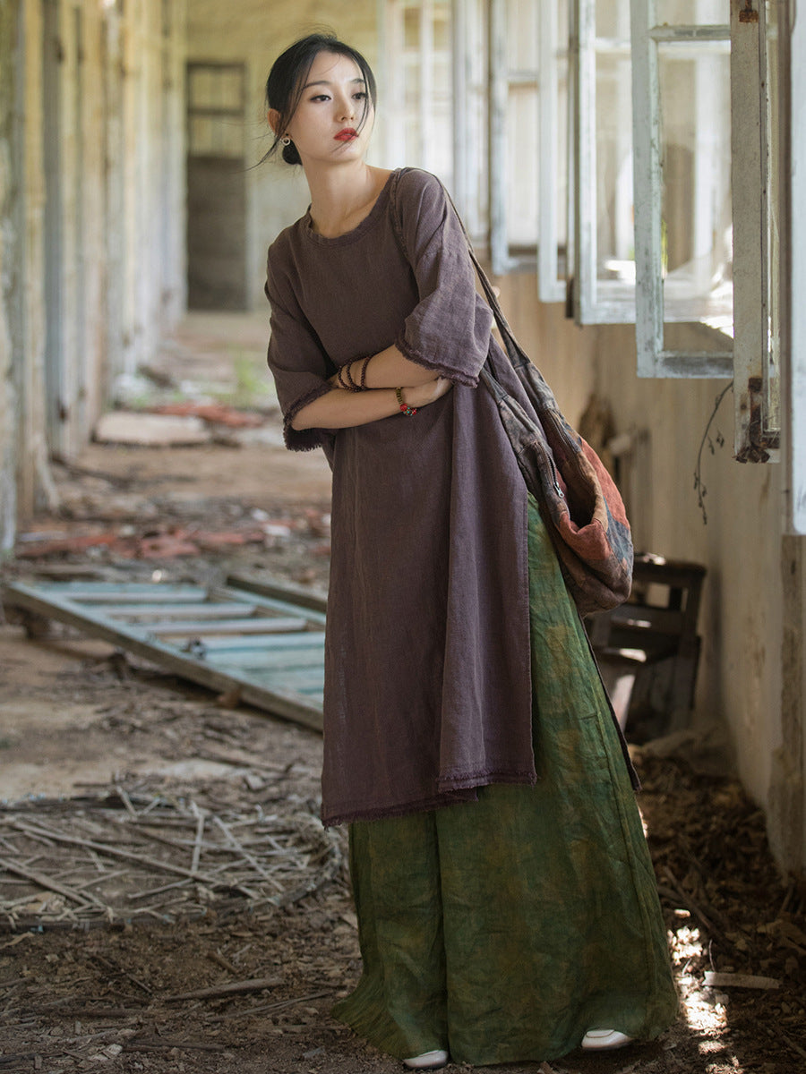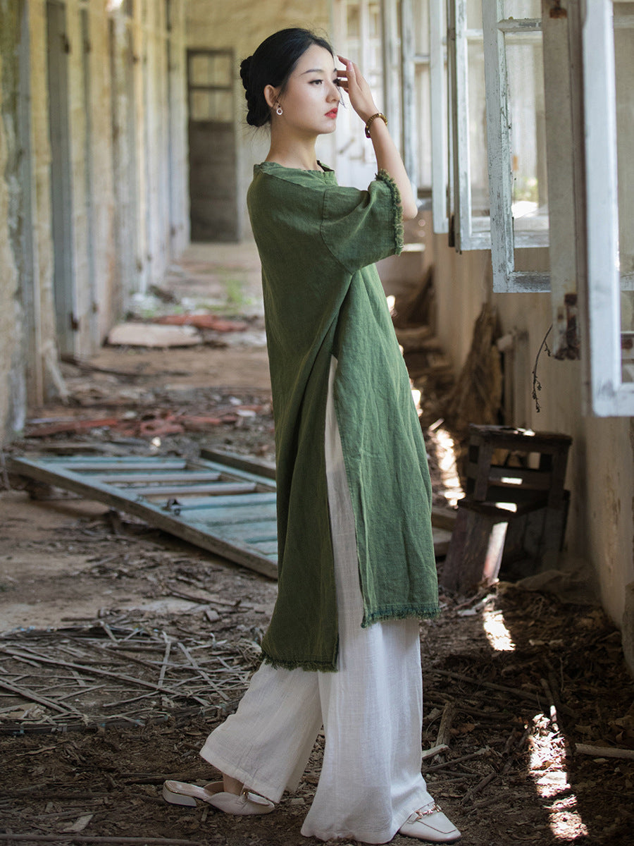 Plus Size Women Summer Vintage Tassel Split Hem Dress