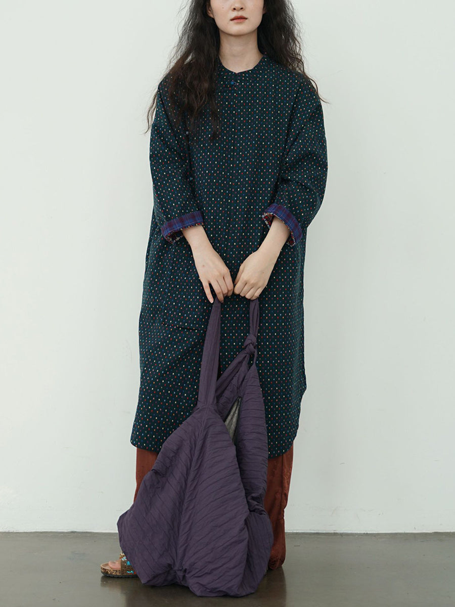 Women Vintage Autumn Dot Irregular Spliced Cotton Robe Dress