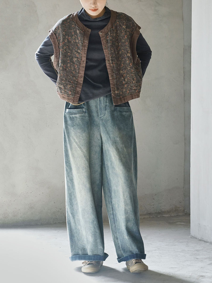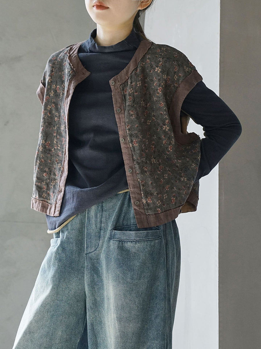 Made of 100% cotton. this vintage-style vest features a beautiful floral pattern on an O-neck collar. Perfect for spring and summer weather.