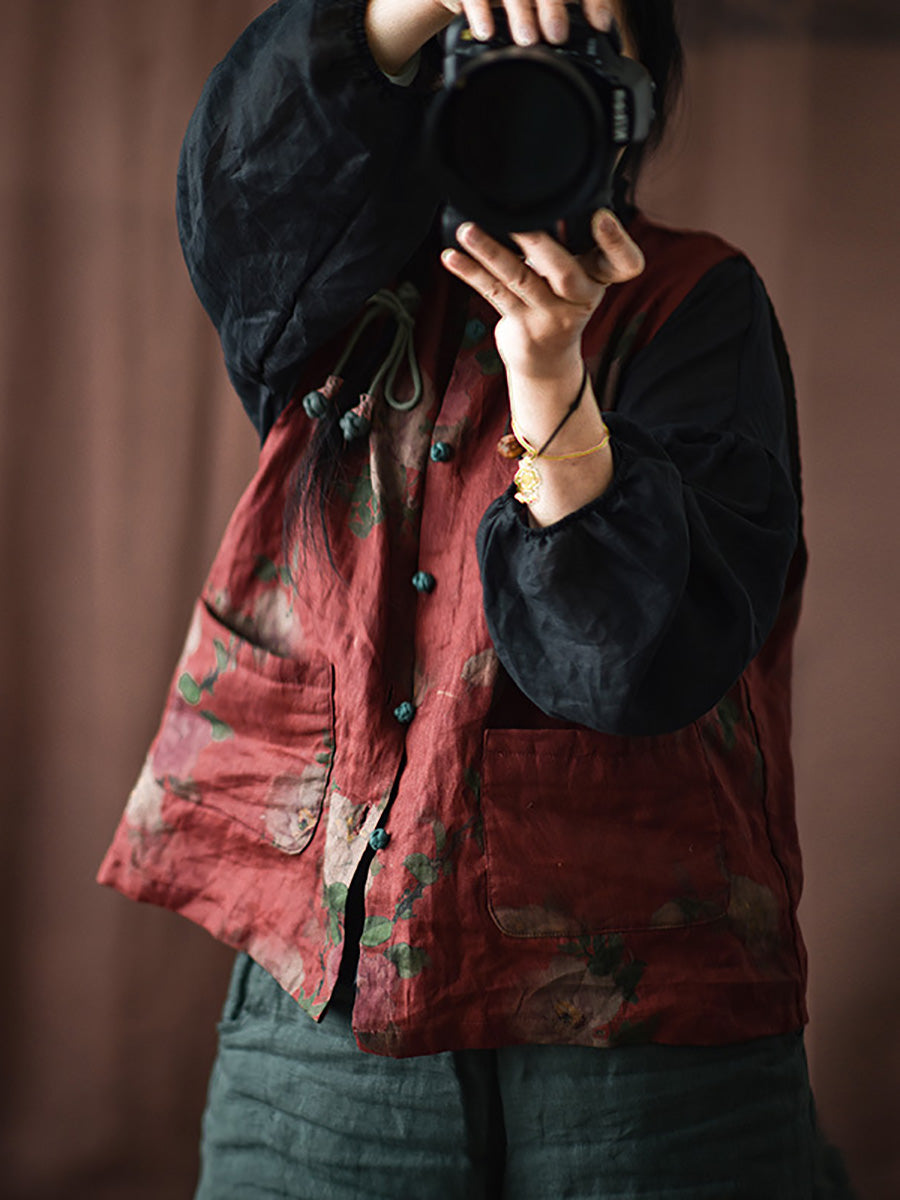 Made of durable linen. this vest features a stunning floral pattern and a stylish O-neck collar. The sleeveless design and ethnic flair make it perfect for both spring and autumn seasons.