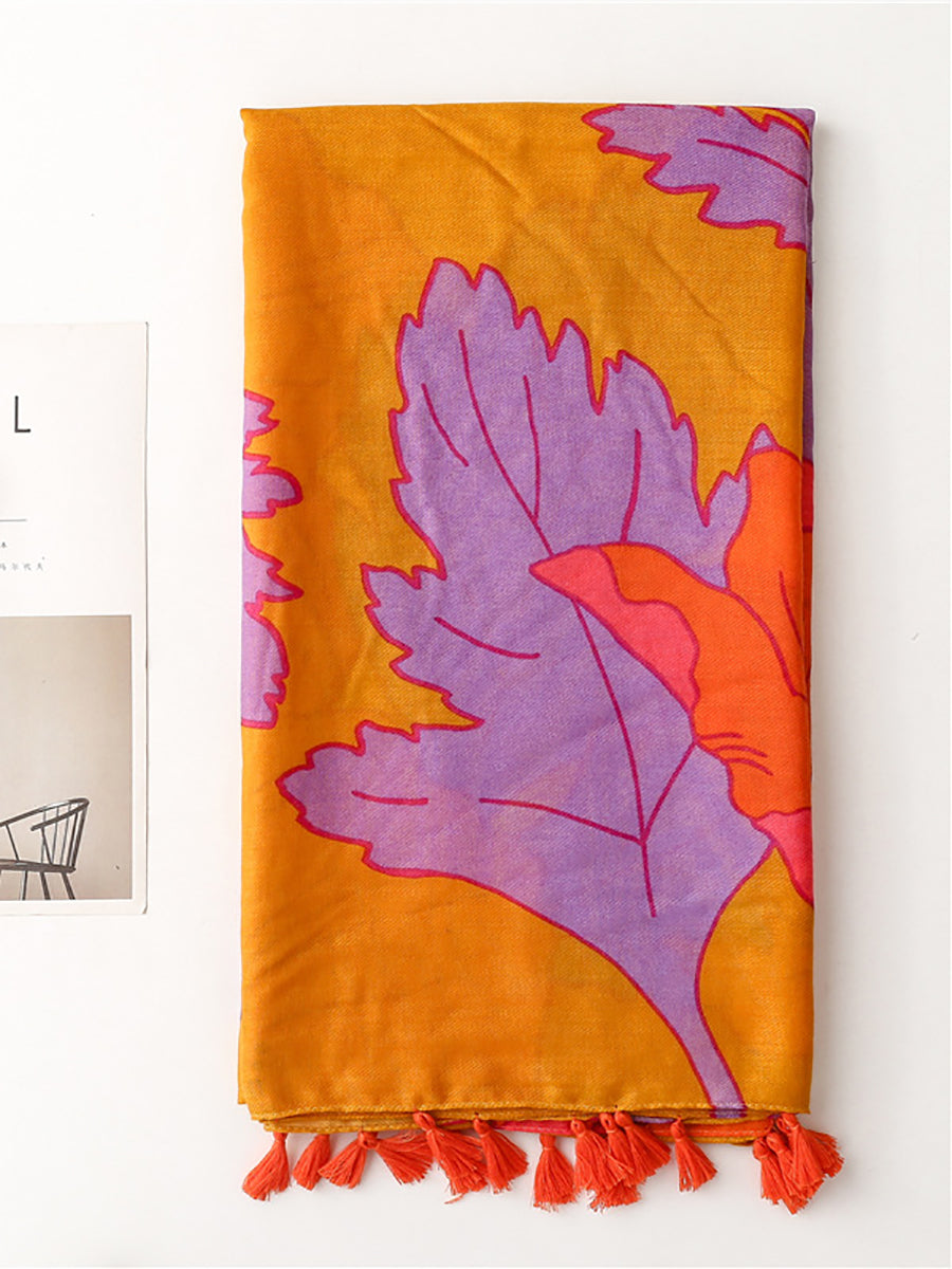 Women Vintage Flower Tassel Travel Shawl Scarf