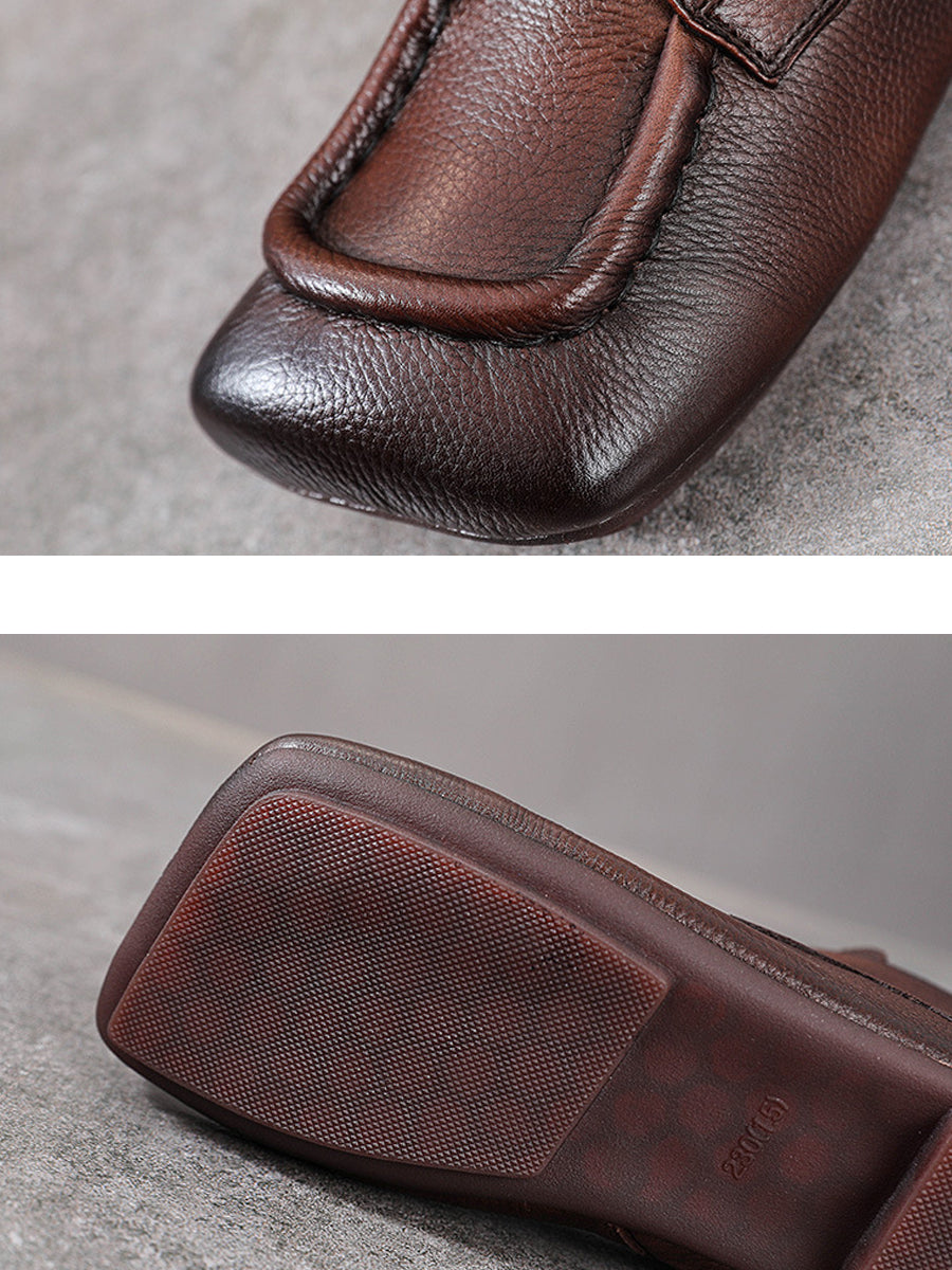 Women Vintage Genuine Leather Spliced Low Heel Boots