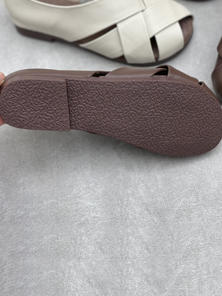 Women Vintage Genuine Leather Spliced Low Heel Shoes