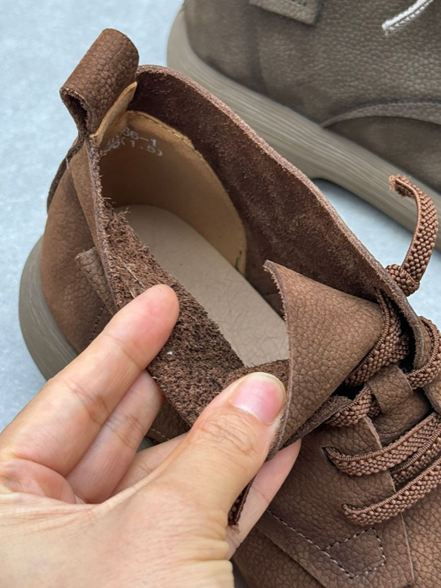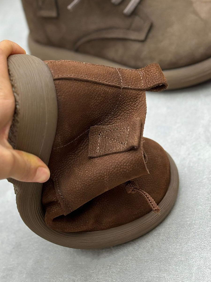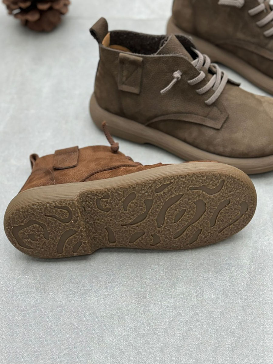 Women Vintage Genuine Leather Strap Low Heel Boots