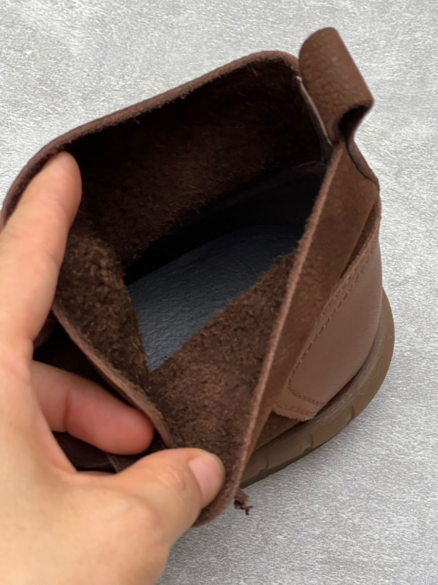 Women Vintage Leather Spliced Drawstring Ankle Boots