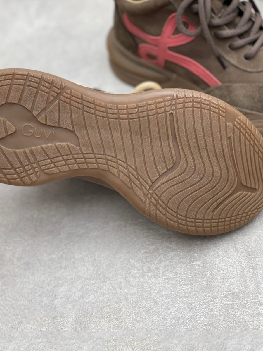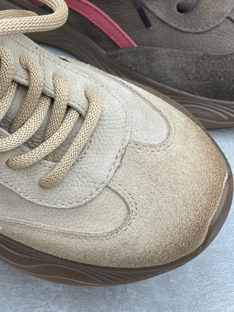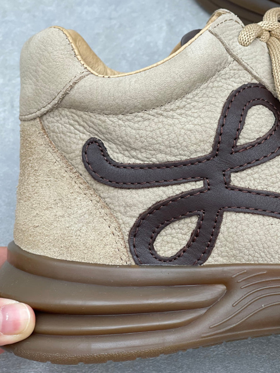 Women Vintage Leather Spliced Platform Shoes