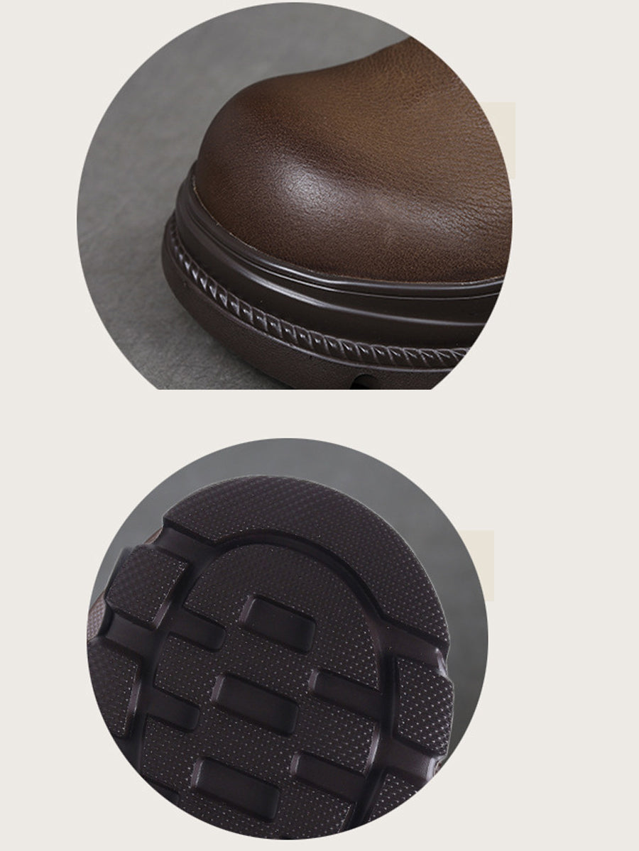 Women Vintage Pure Colo Leather Platform Ankle Boots