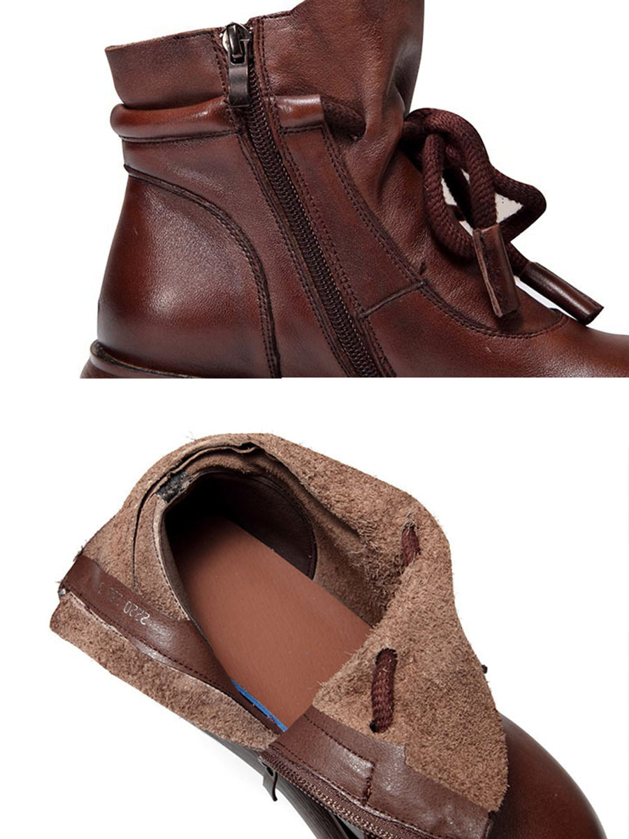 Women Vintage Winter Leather Spliced Platform Boots