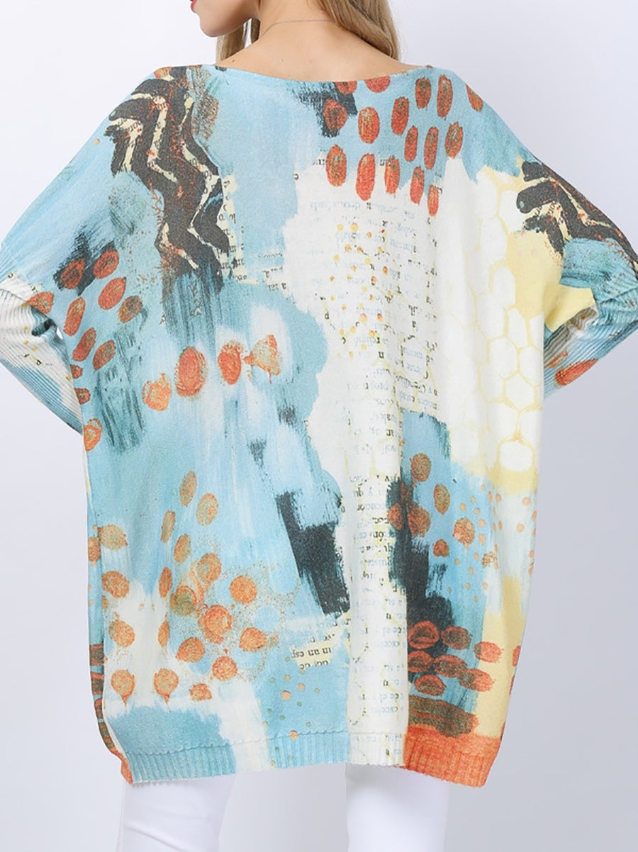Women Winter Casual Print Pullover Knitted Long Sweater