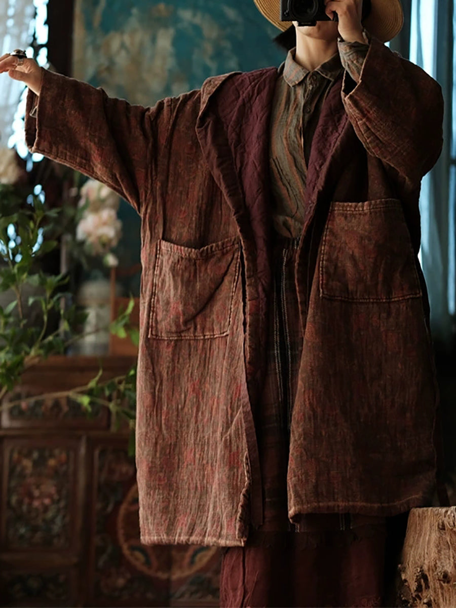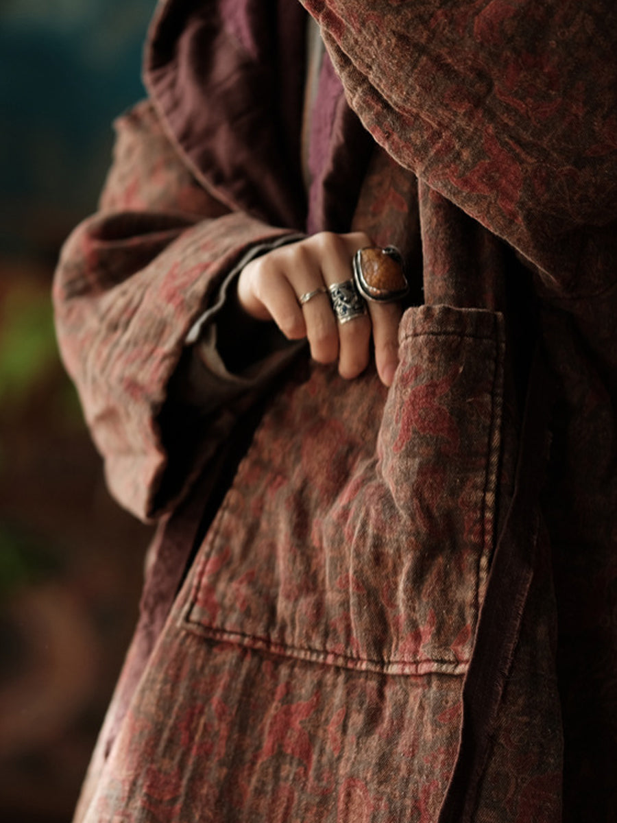 Women Winter Ethnic Print Hooded Cotton Coat