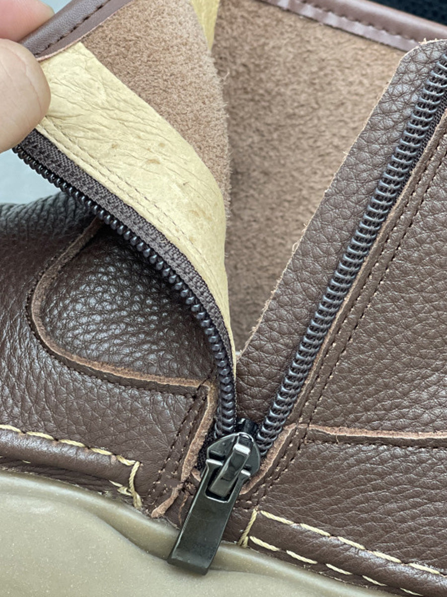 Women Winter Genuine Leather Spliced Flat Ankle Boots