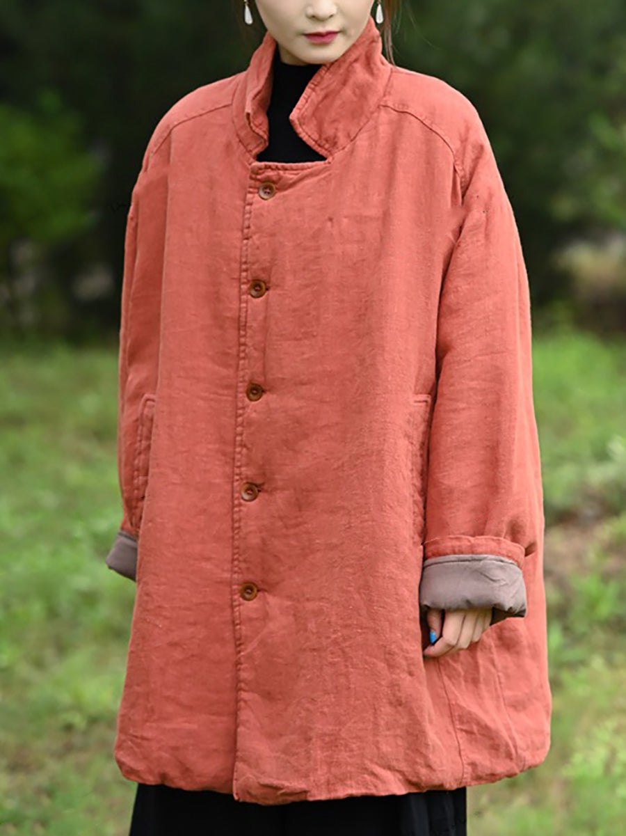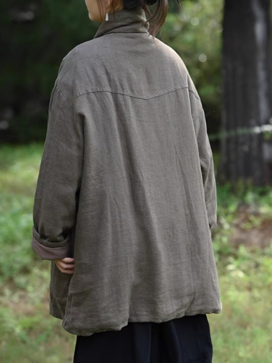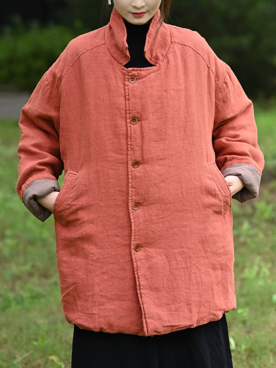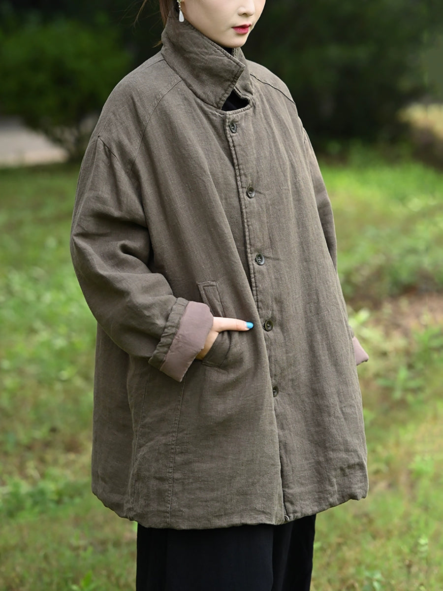 Women Winter Retro Pure Color Turn-down Collar Padded Jacket