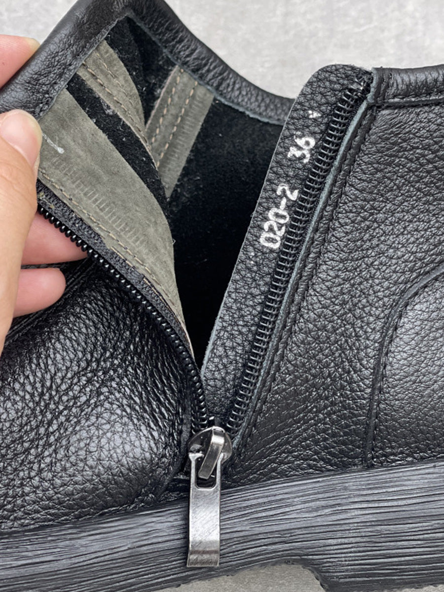 Women Winter Soft Leather Pure Color Flat Ankle Boots