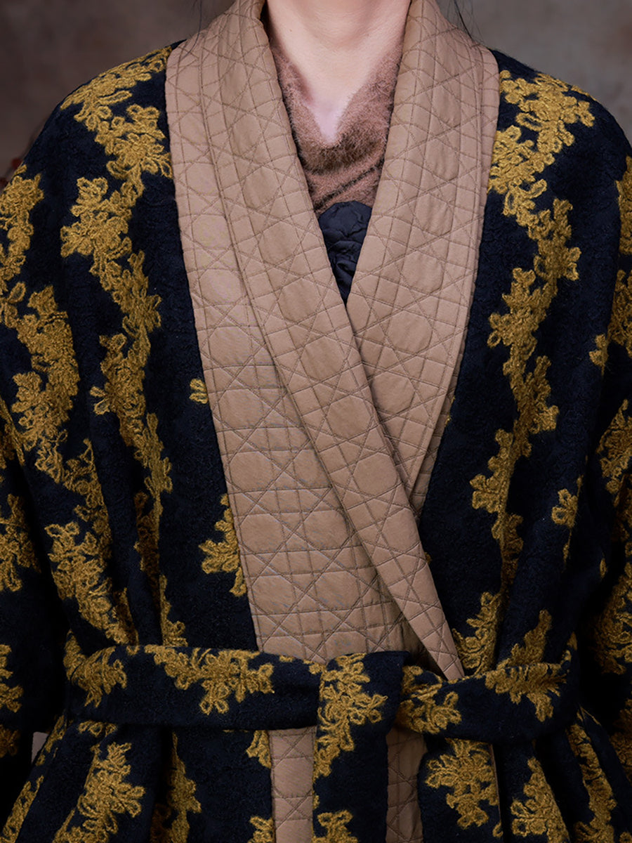 This unique women's winter vintage jacquard long over-the-knee trench coat is crafted from premium materials for durability. Beautifully designed and stylish. this dress will be the center of attention wherever you go. Beautiful floral patterns can add to your charm and beauty. You'll be delighted to have one of these coats for winter!