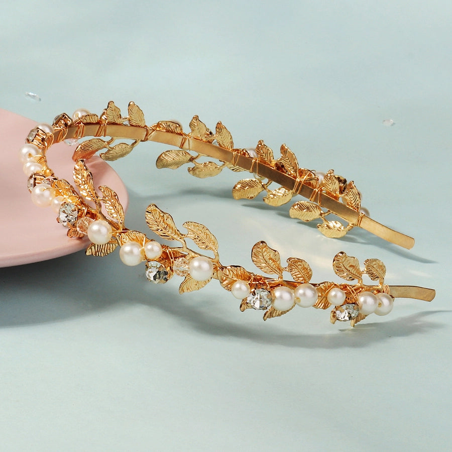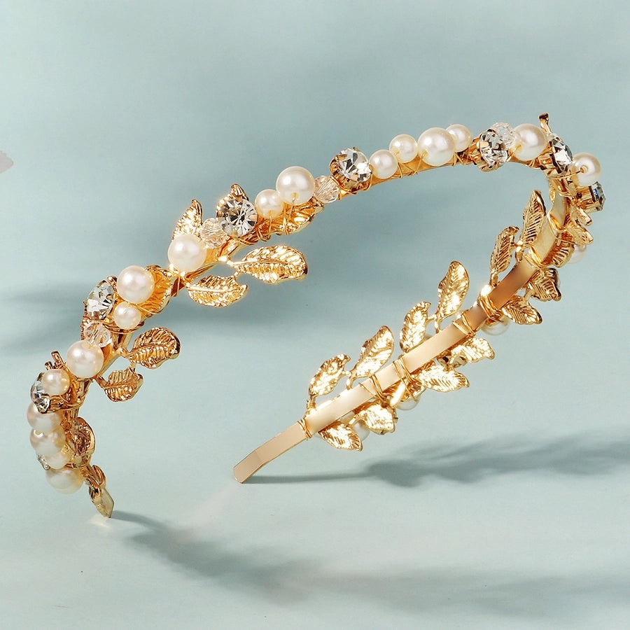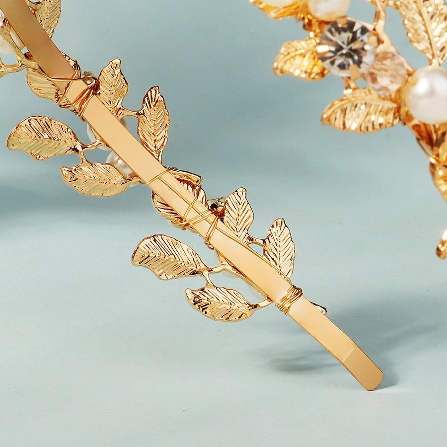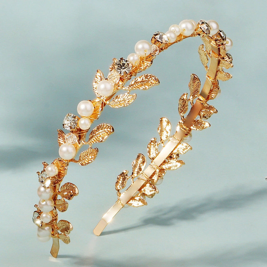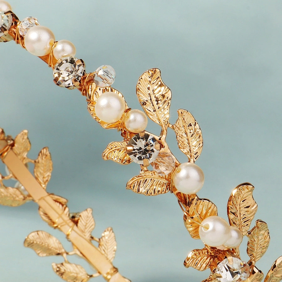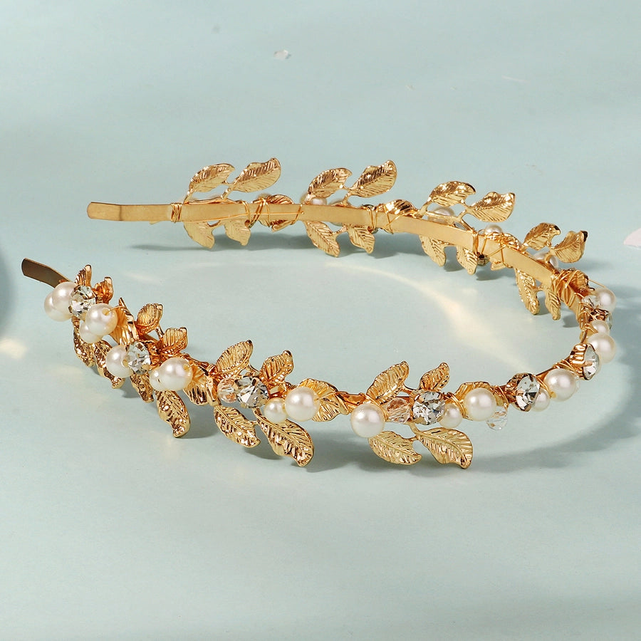 Women's Elegant Luxurious Leaf Alloy Inlay Imitation Pearl Rhinestones Hair Band