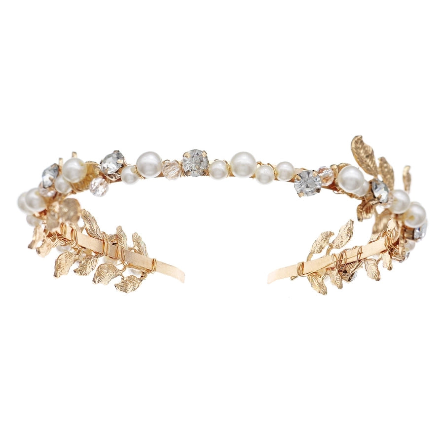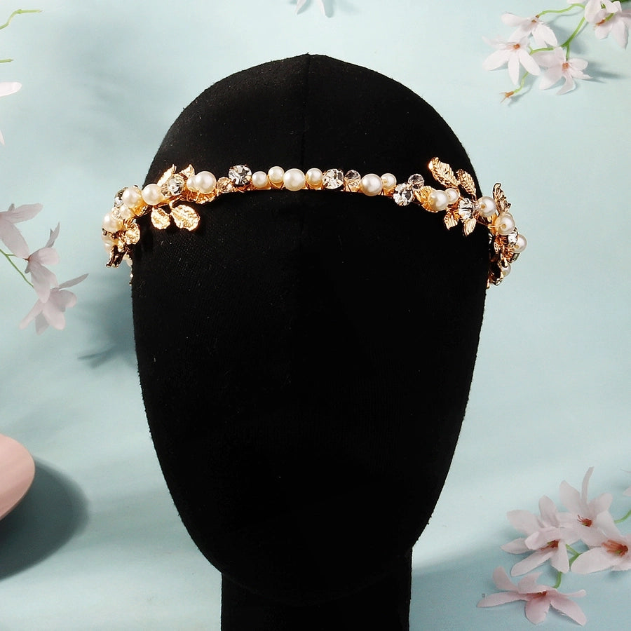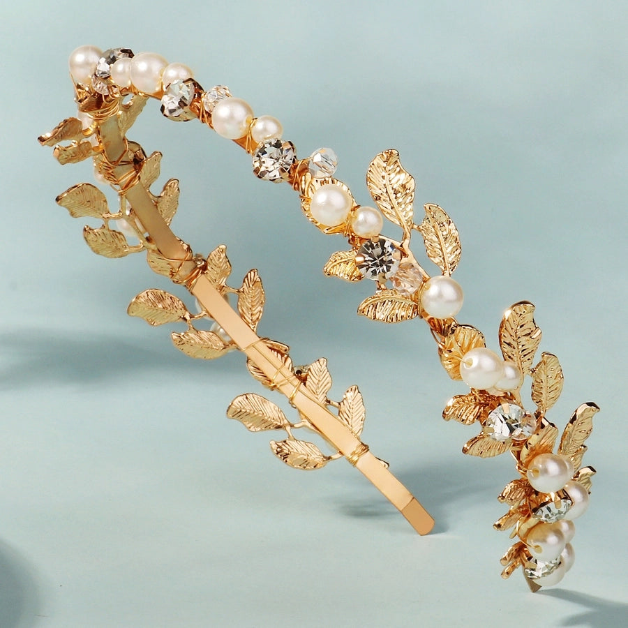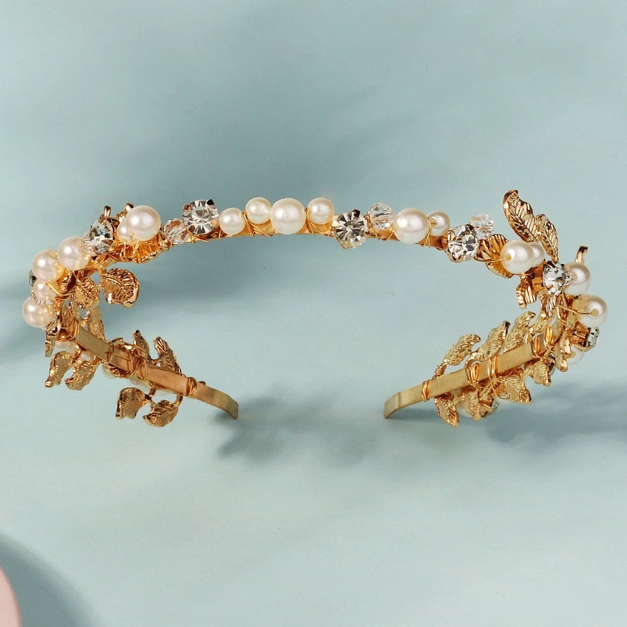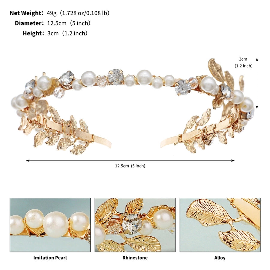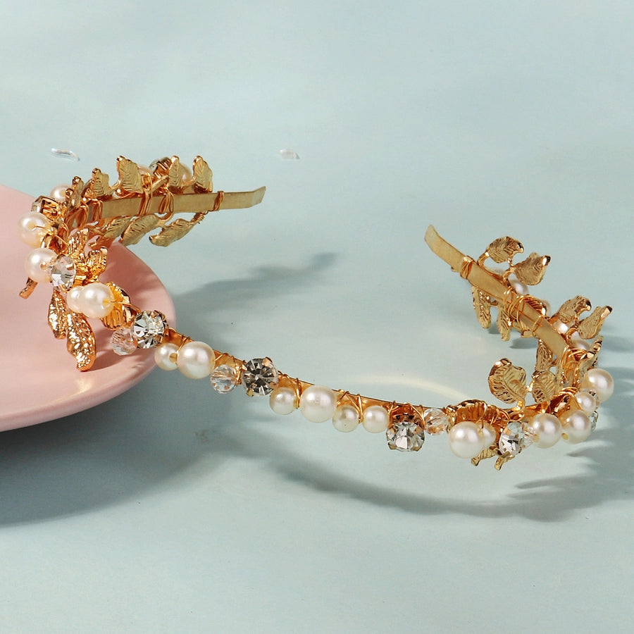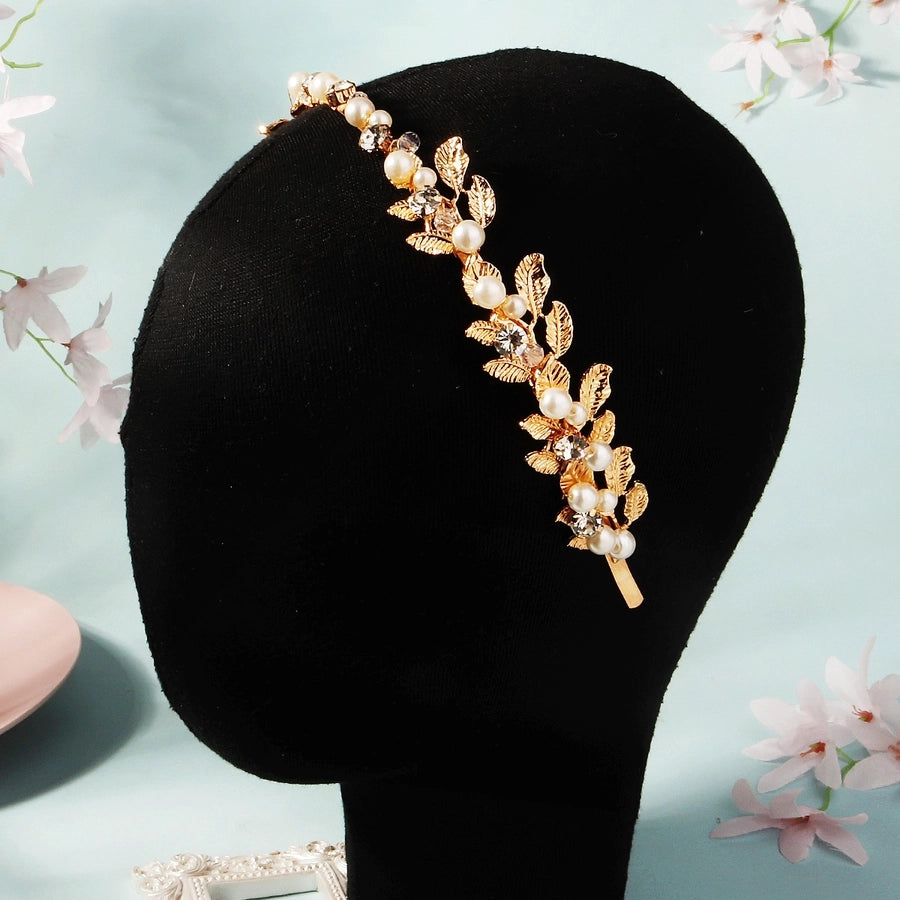 Women's Elegant Luxurious Leaf Alloy Inlay Imitation Pearl Rhinestones Hair Band