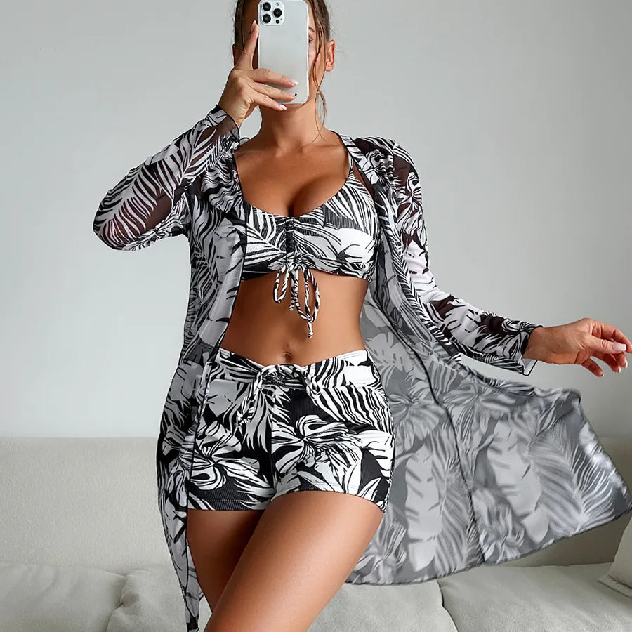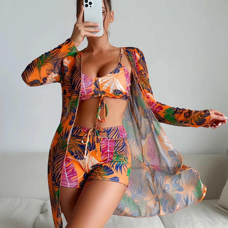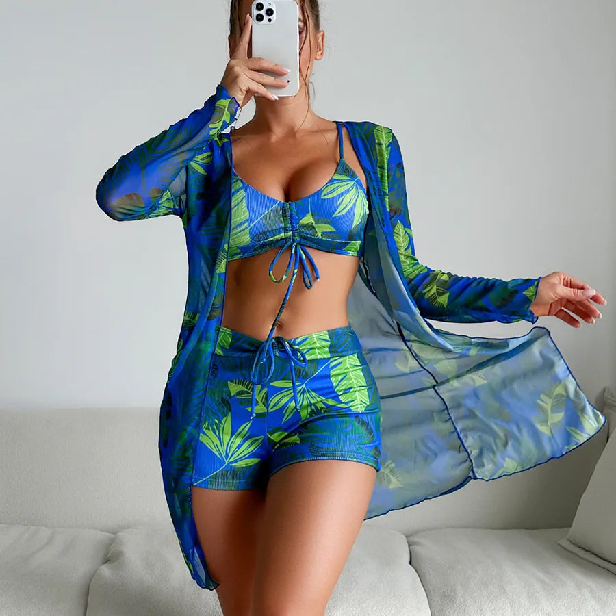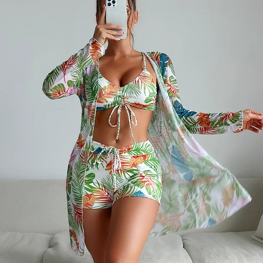 Women's Elegant Printing 3 Pieces Set Bikinis Swimwear