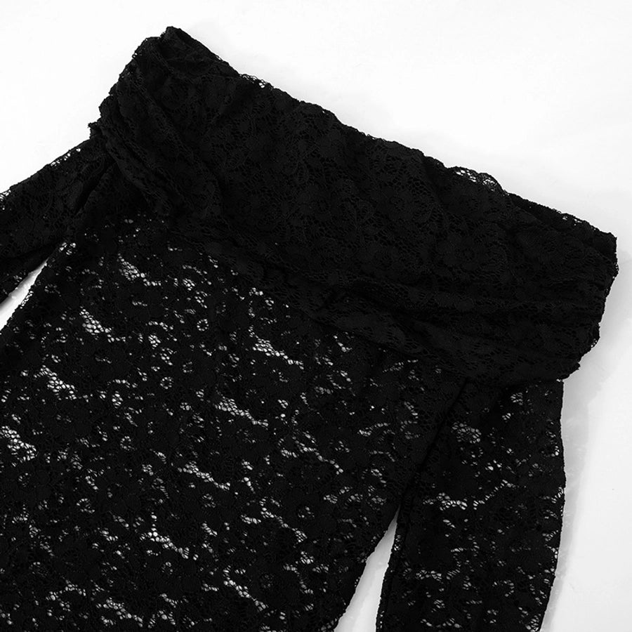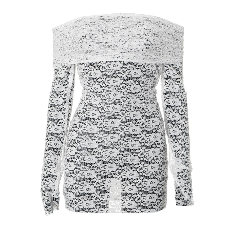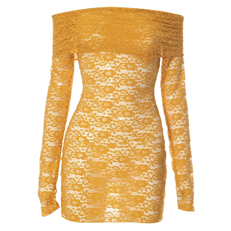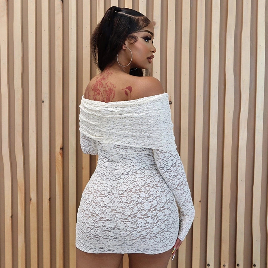 Women's Hip skirt Sexy Boat Neck Long Sleeve Solid Color Above Knee Masquerade