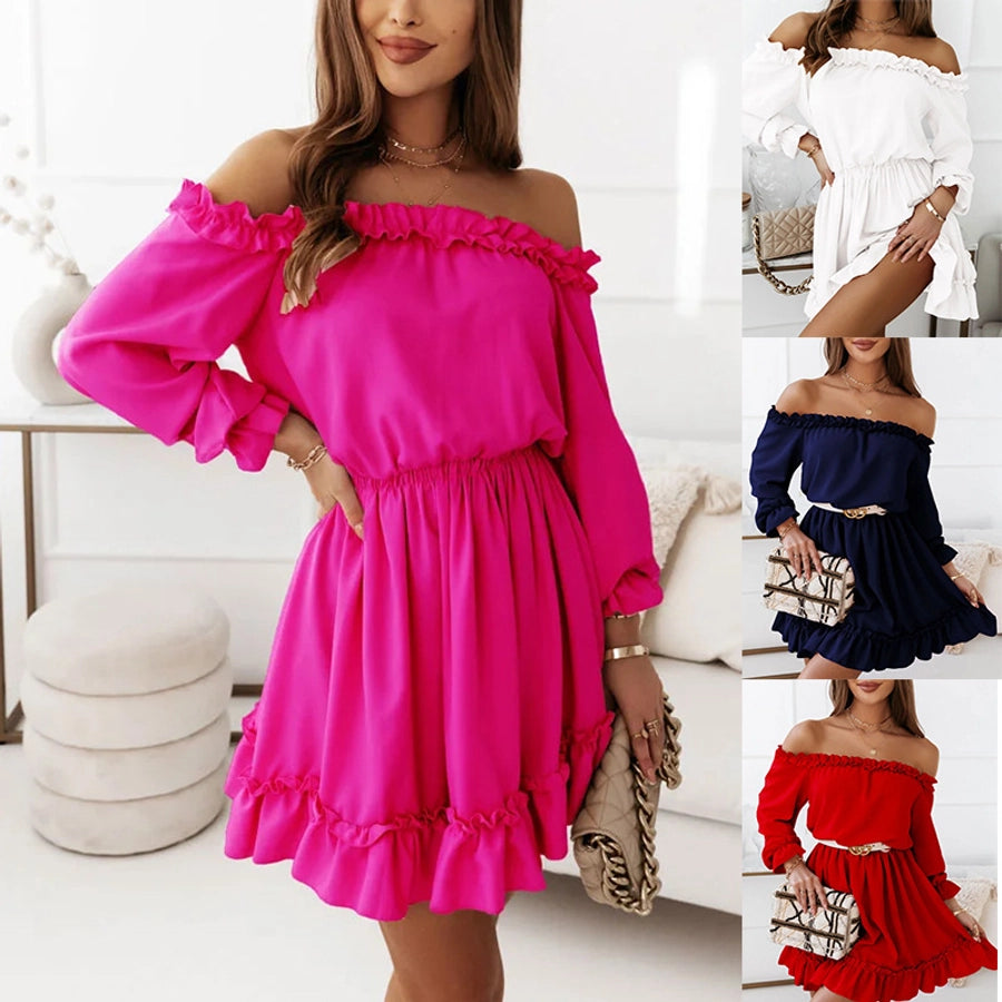 women's regular dress fashion off shoulder patchwork long sleeve solid color above knee daily