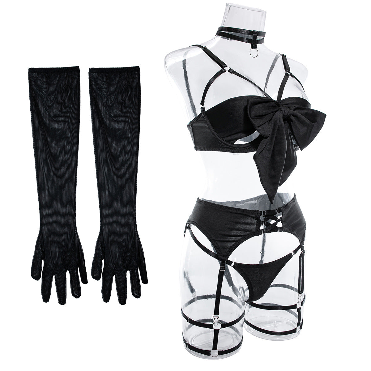 women's sexy solid color sexy lingerie sets party big bow underwire bra medium high waist thong sexy lingerie
