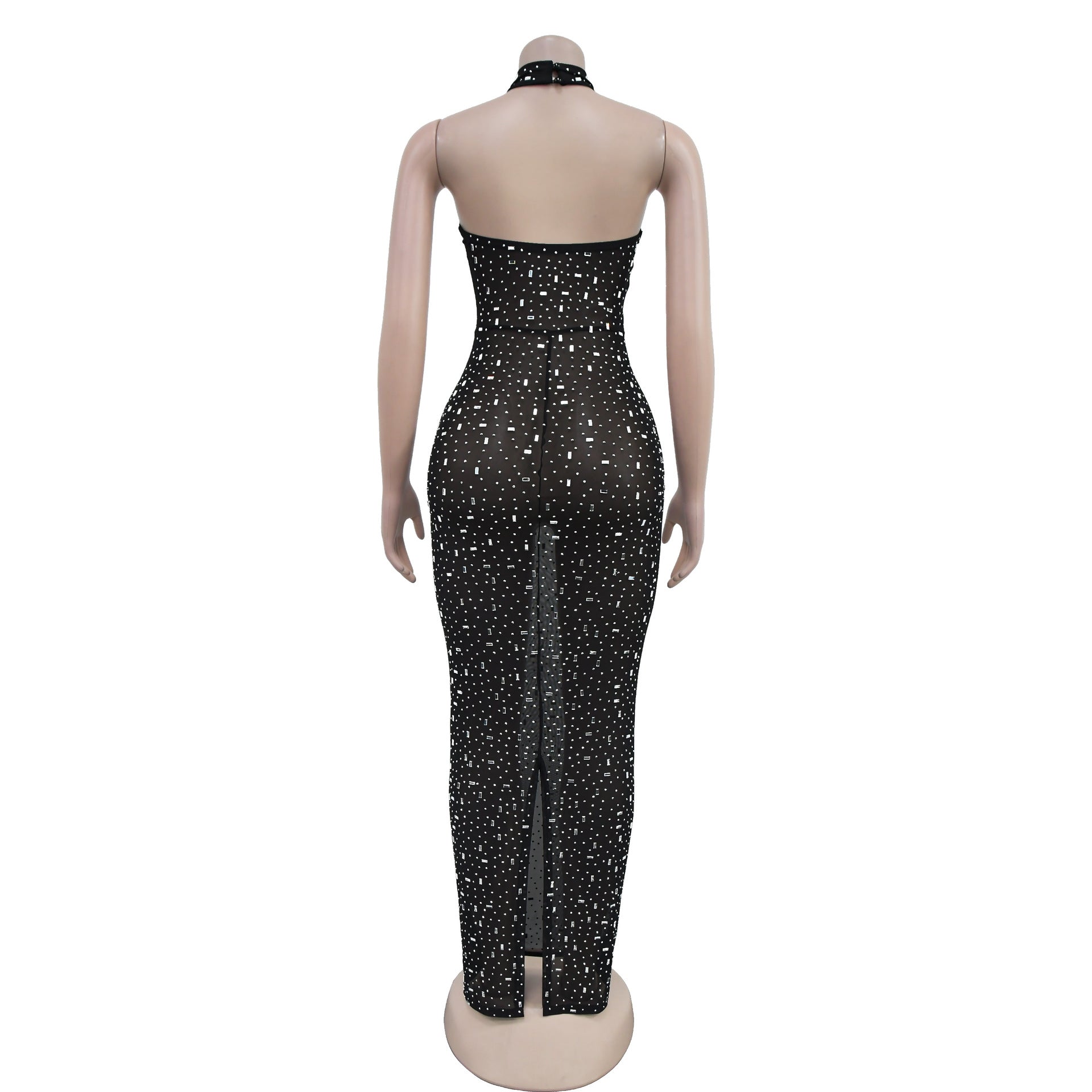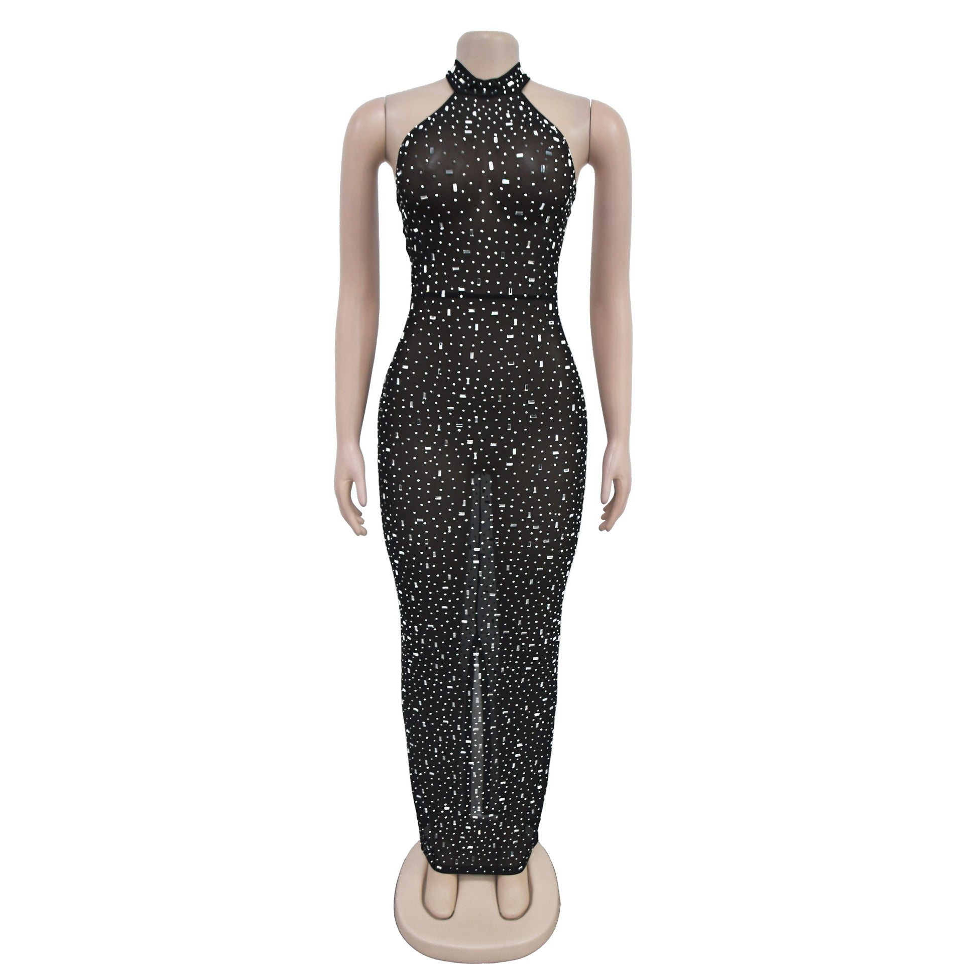 Women's Sheath Dress Elegant Halter Neck Sleeveless Solid Color Maxi Long Dress Banquet