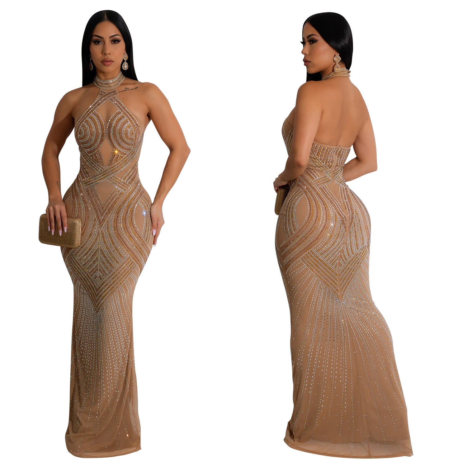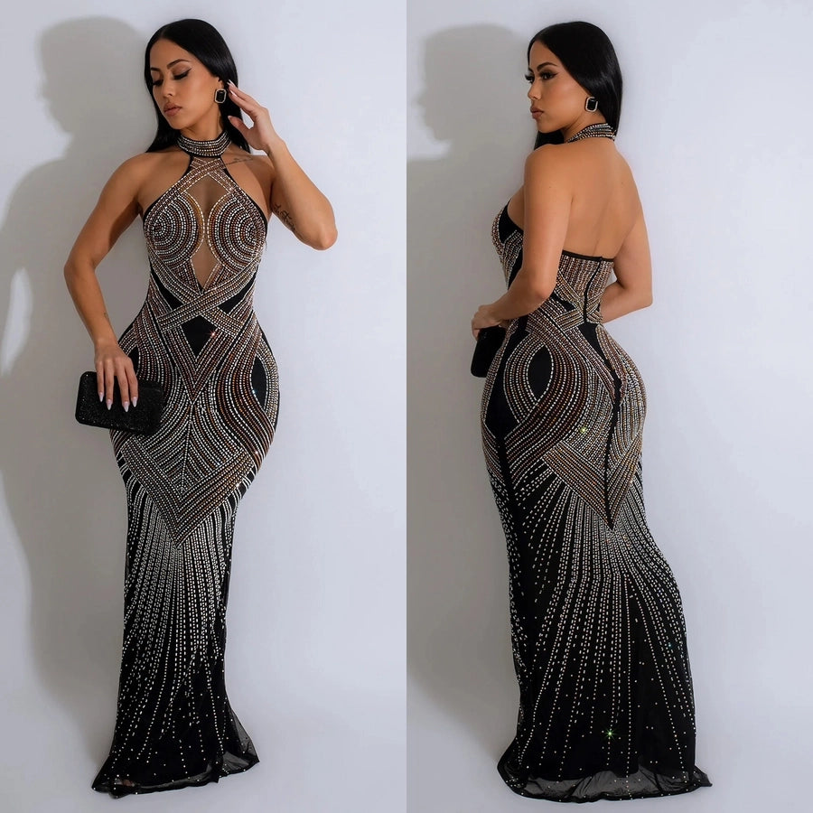 Women's Sheath Dress Elegant Halter Neck Sleeveless Solid Color Maxi Long Dress Cocktail Party