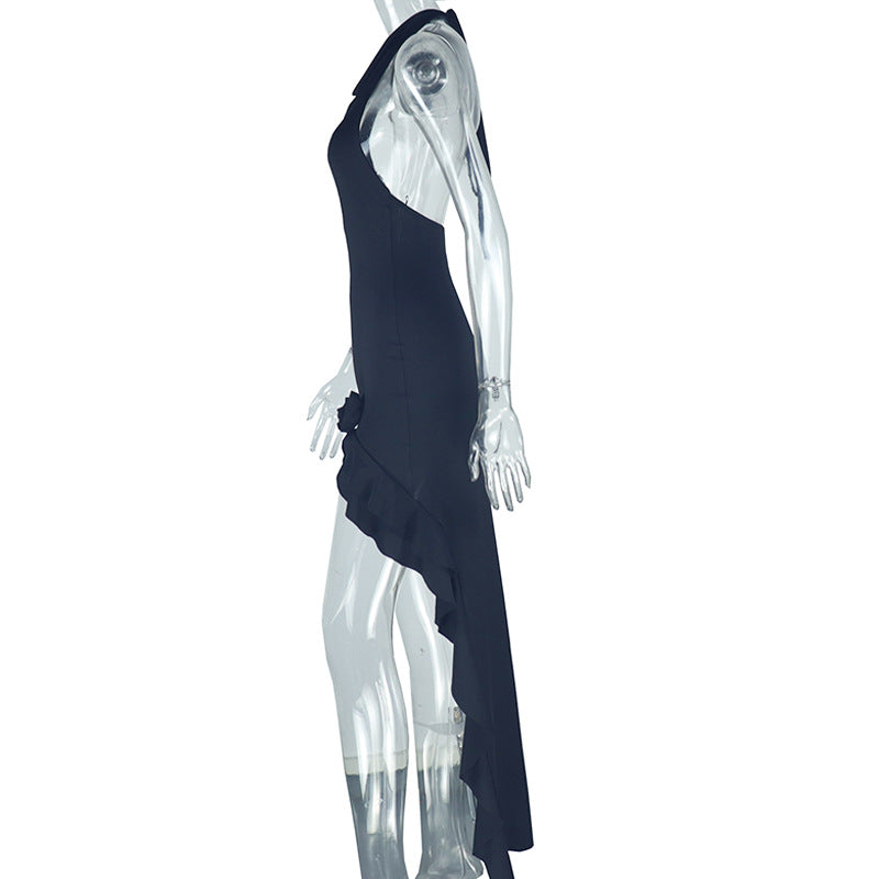 Women's Sheath Dress Elegant Sexy Halter Neck Pleated Sleeveless Solid Color Asymmetrical Dress Banquet