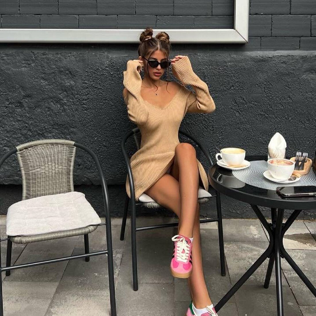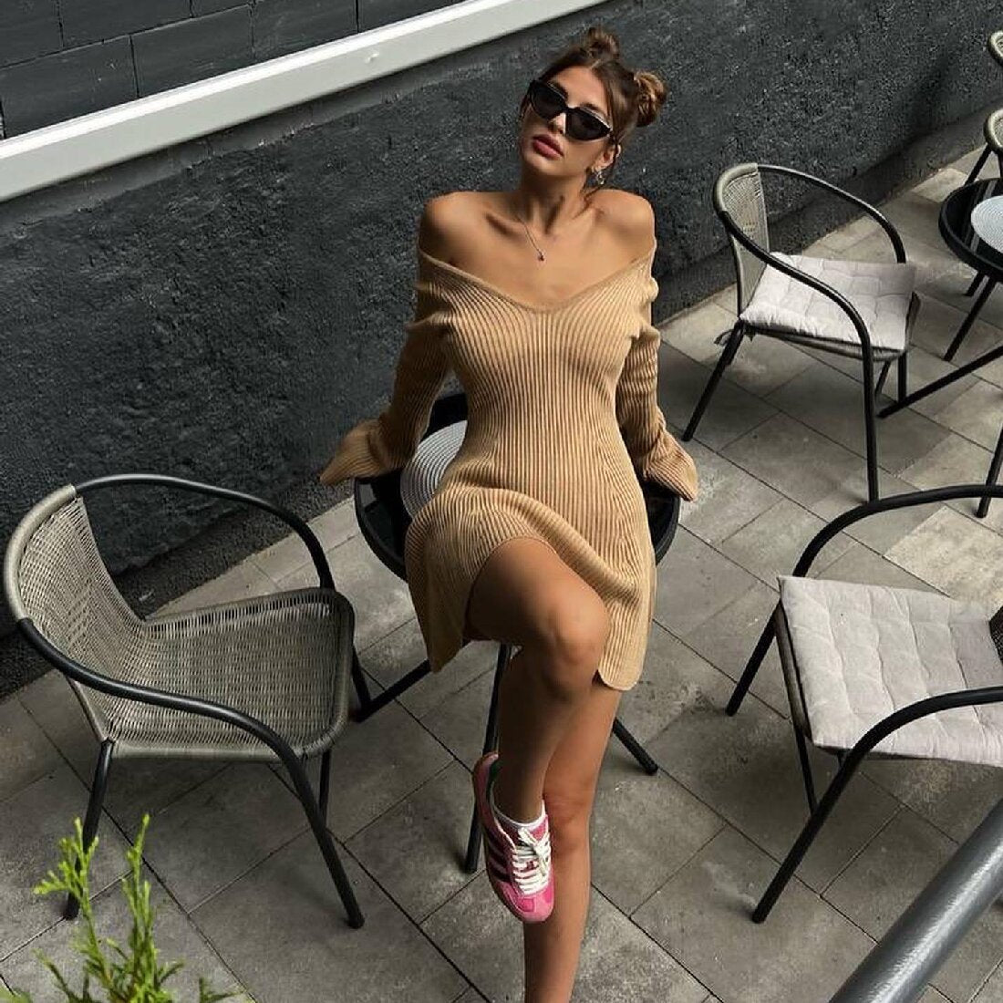 Women's Sheath Dress Simple Style V Neck Long Sleeve Solid Color Above Knee Holiday