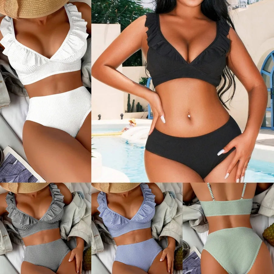 Women's Stripe 2 Pieces Set Bikinis Swimwear