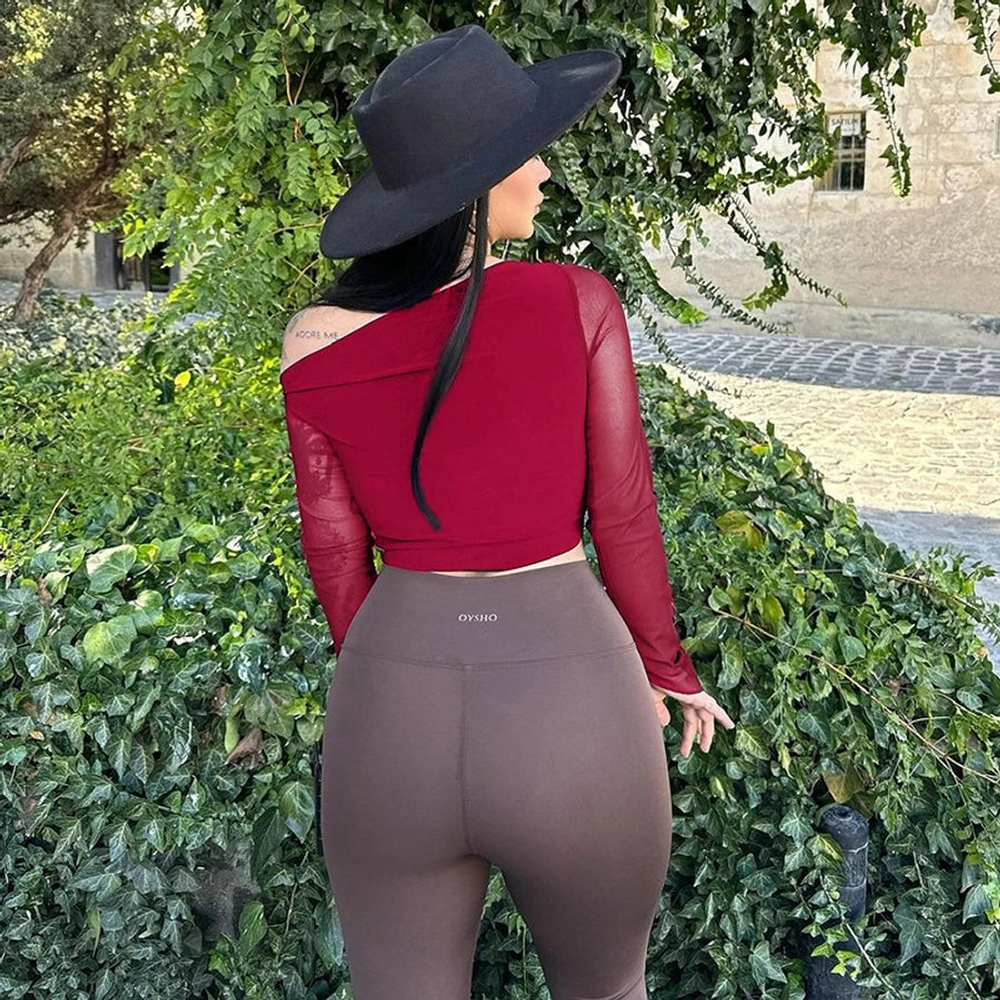 Women's T-shirt Long Sleeve Blouses Wine Red Elegant Solid Color