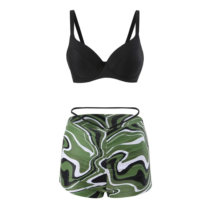 Women's Vacation Simple Style Printing 3 Pieces Set Bikinis Swimwear