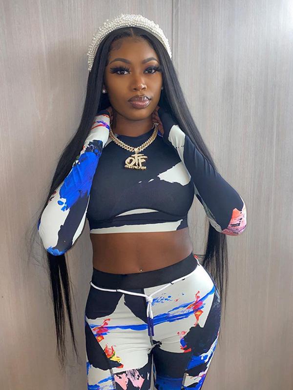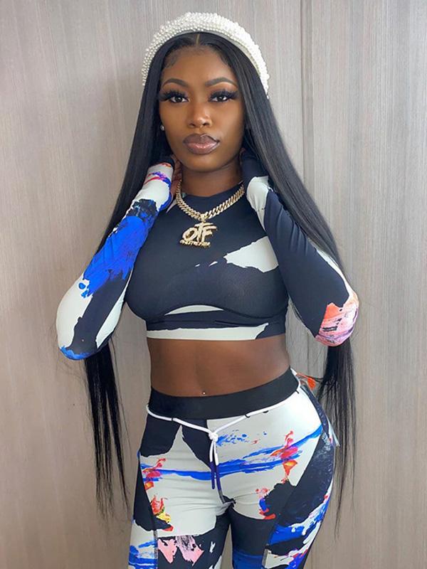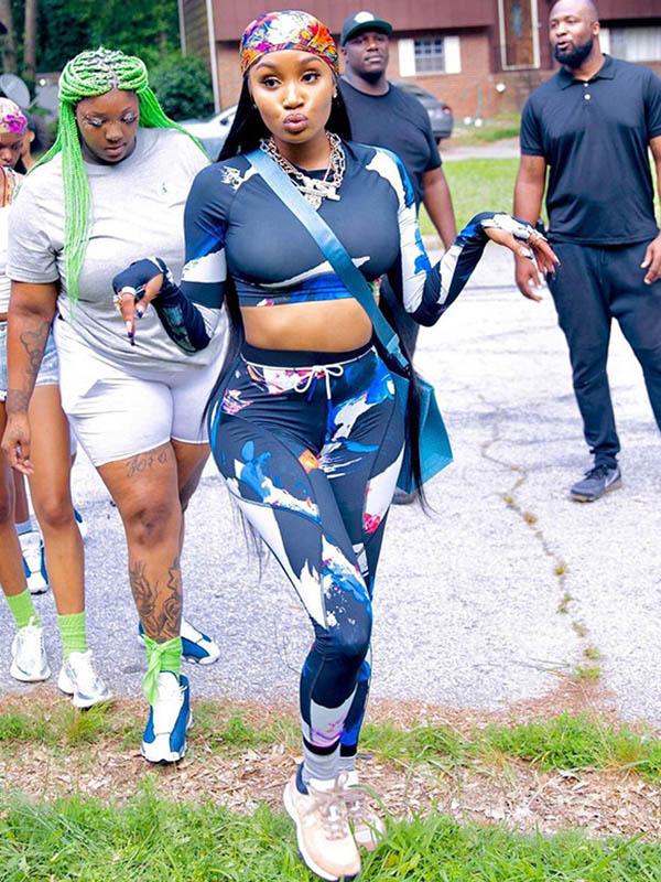 Wrap Long Sleeves Exposed Navel Tees&Leggings Suits