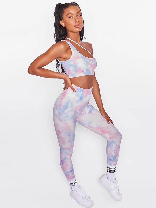 Wrap Tie-Dyed One-Shoulder Yoga Suits