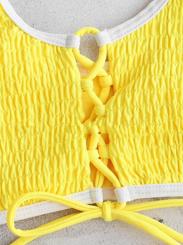 Yellow Ruffled Lace-Up Bikini Swimsuit