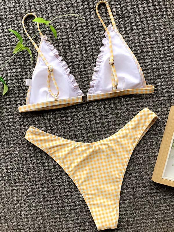 Yellow Ruffled Triangle Top Bikinis Swimwear