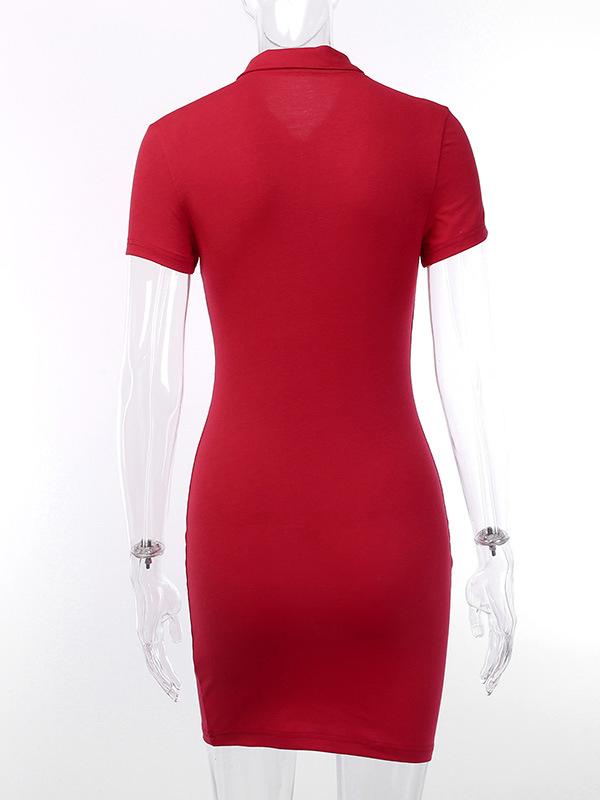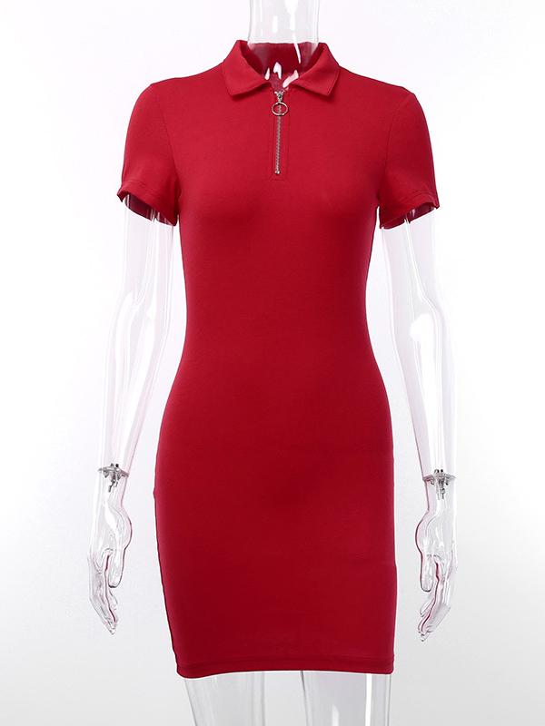 Zipper Polo Collar Wrapped Mini Dress